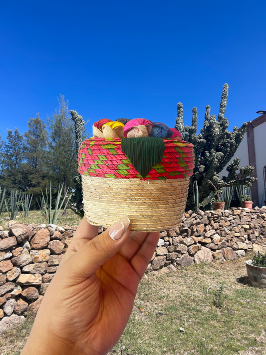 Straw Basket with Flower Lid